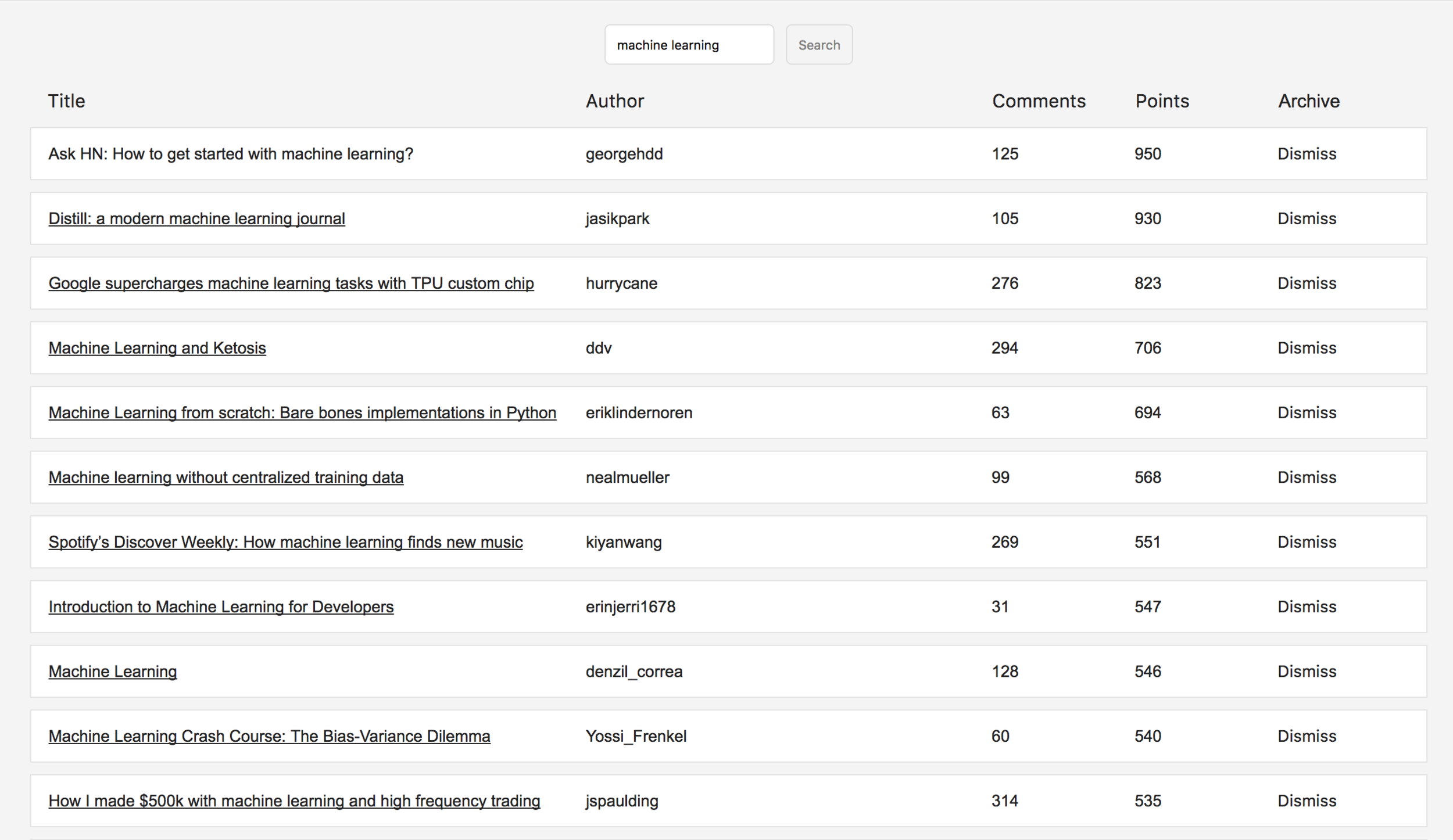 A React + Redux application that queries into Hacker News database and lets users find relevant content based on search terms