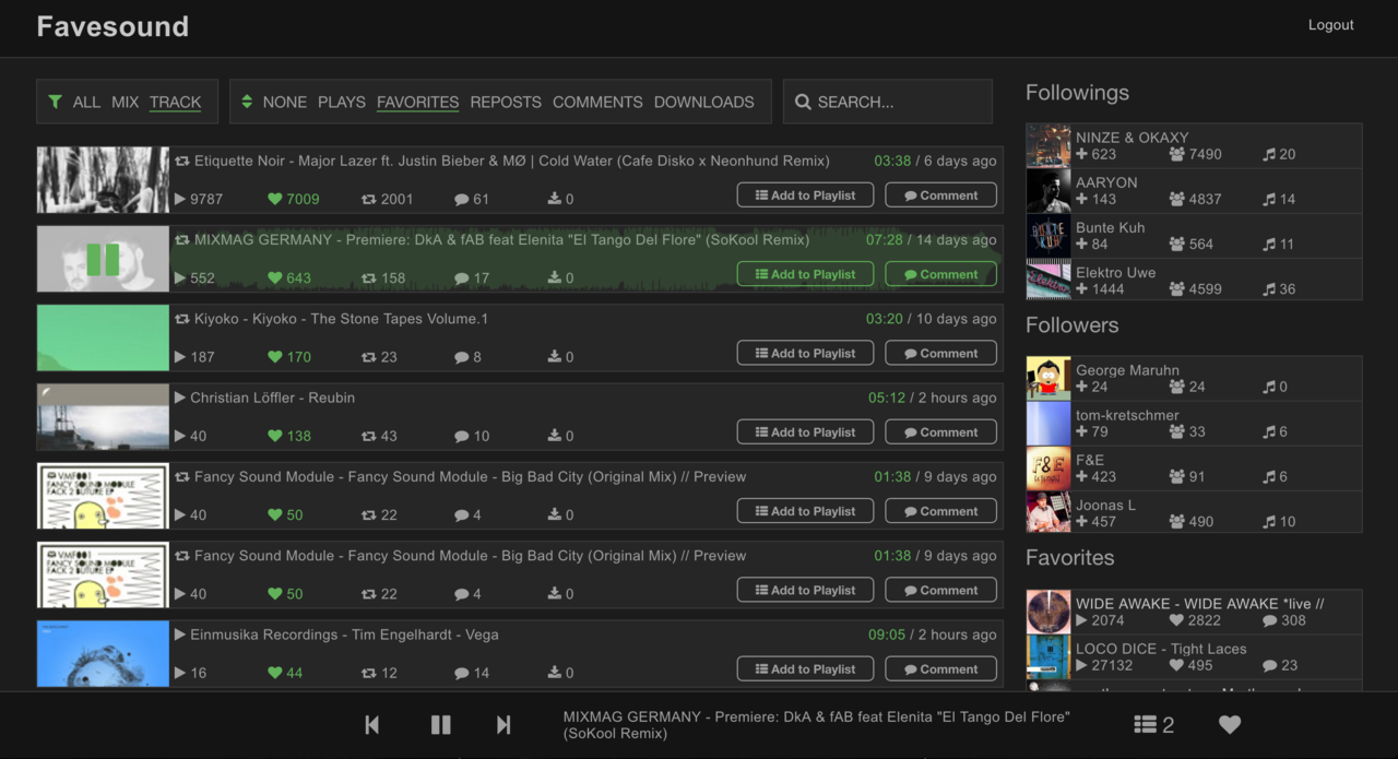 I built a running React + Redux app, which consumes the SoundCloud API. Users will be able to login with your SoundCloud account, list your latest tracks and listen to them within the browser.